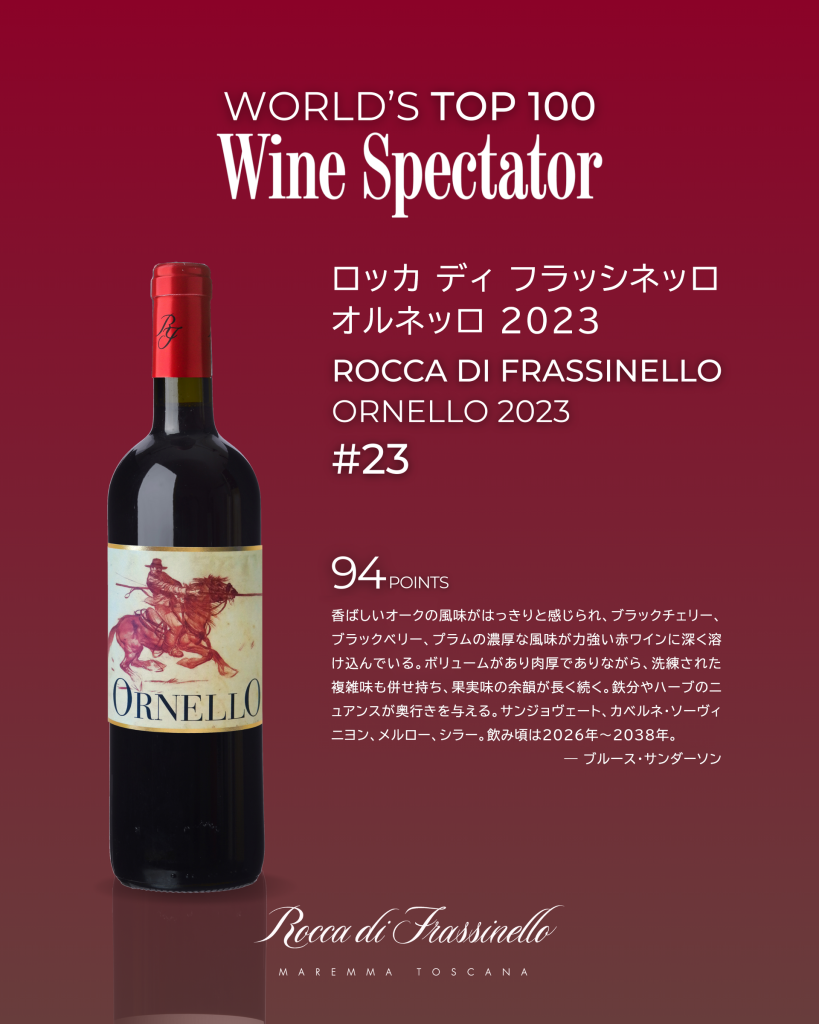 当社取り扱いワイン「ロッカ・ディ・フラッシネッロ/オルネッロ」の2023年ヴィンテージが、世界的に権威のあるワイン専門誌 Wine Spectator (ワイン スペクテイター)の「Top 100 Wines 2025」にランクイン!